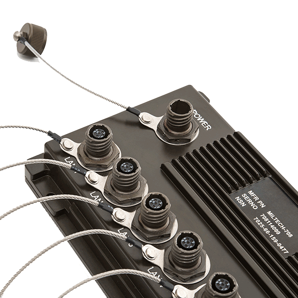 The MILTECH 708 operates on readily available 24VDC power and supports MIL-STD1275 so that it may be powered directly from any available battery in the field. The unit's mechanical packaging enhancements, including ruggedized D38999 circular connectors deliver IP67 and MIL-STD-810F airborne and ground environmental compliance for high reliability.