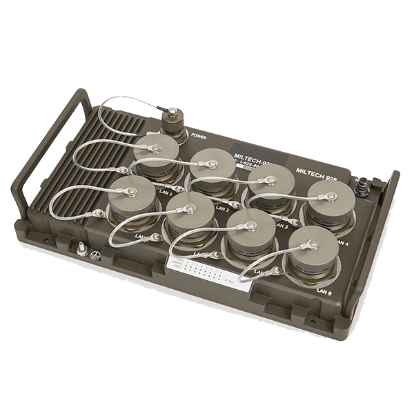 The MILTECH 928 serves as a robust COTS solution for providing local area network (LAN) connectivity to IP-enabled computing and net-centric devices in ground vehicle and airborne applications.