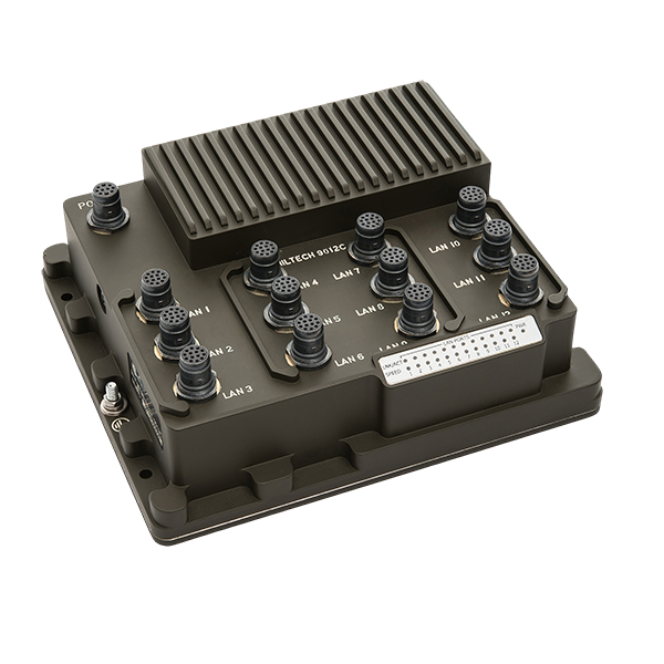 The MILTECH 9012C is a MIL-STD, fully- managed Layer 2 Ethernet switch and a Layer 3 Ethernet router with 12 triple-speed (10/100/1000Mbps) ports + SBC with optional Cisco ESR.